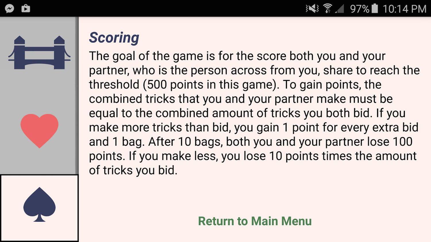 De la tristement célèbre jeu de coeurs, en passant par le jeu de pelles en équipe, en passant par la variation stratégiquement difficile des jeux de type pont, le pont allemand, Card Suite vous apporte une compilation des trois! Avec une répartition intelligente de l'IA et des cartes aléatoires entre tous les joueurs, des possibilités infinies existent pour chaque jeu. Jouez contre des amis espiègles ou des robots brillants, ou même une combinaison des deux avec un système de sélection de bot et de joueurs personnalisable incroyable.